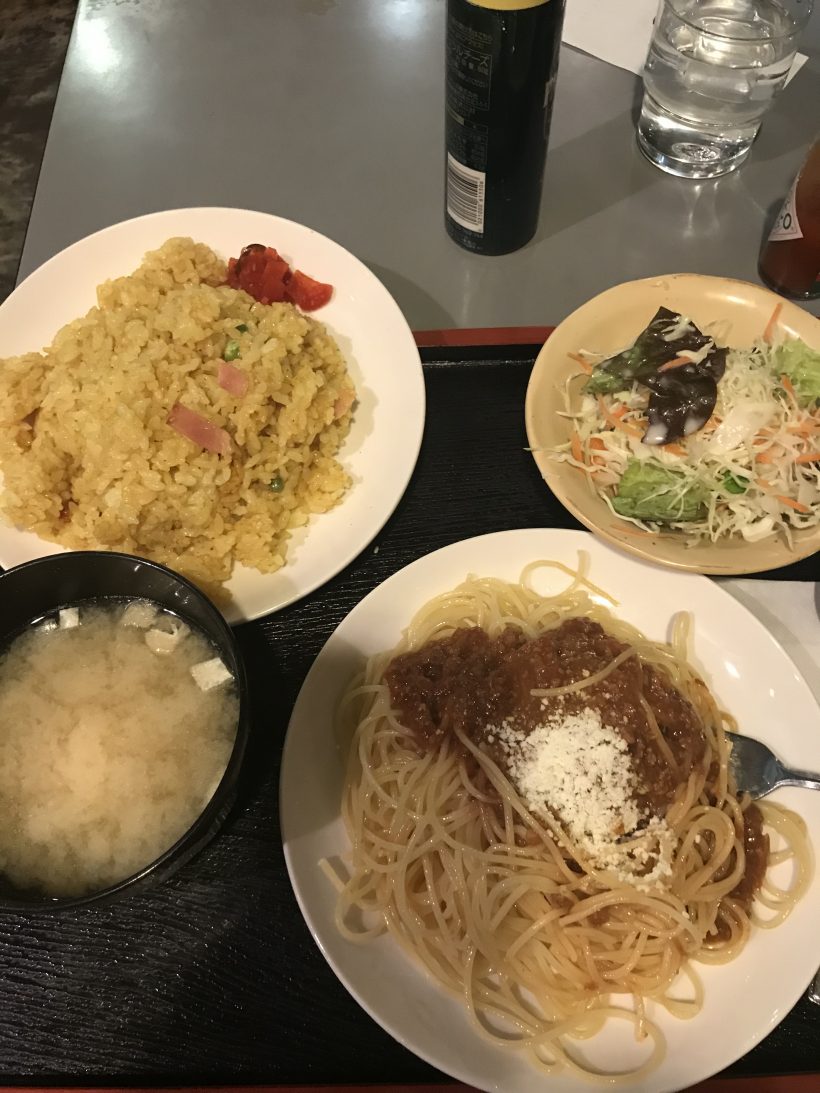 ドライカレーピラフとミートソーススパゲッティのセットが懐かしい味で好きです。