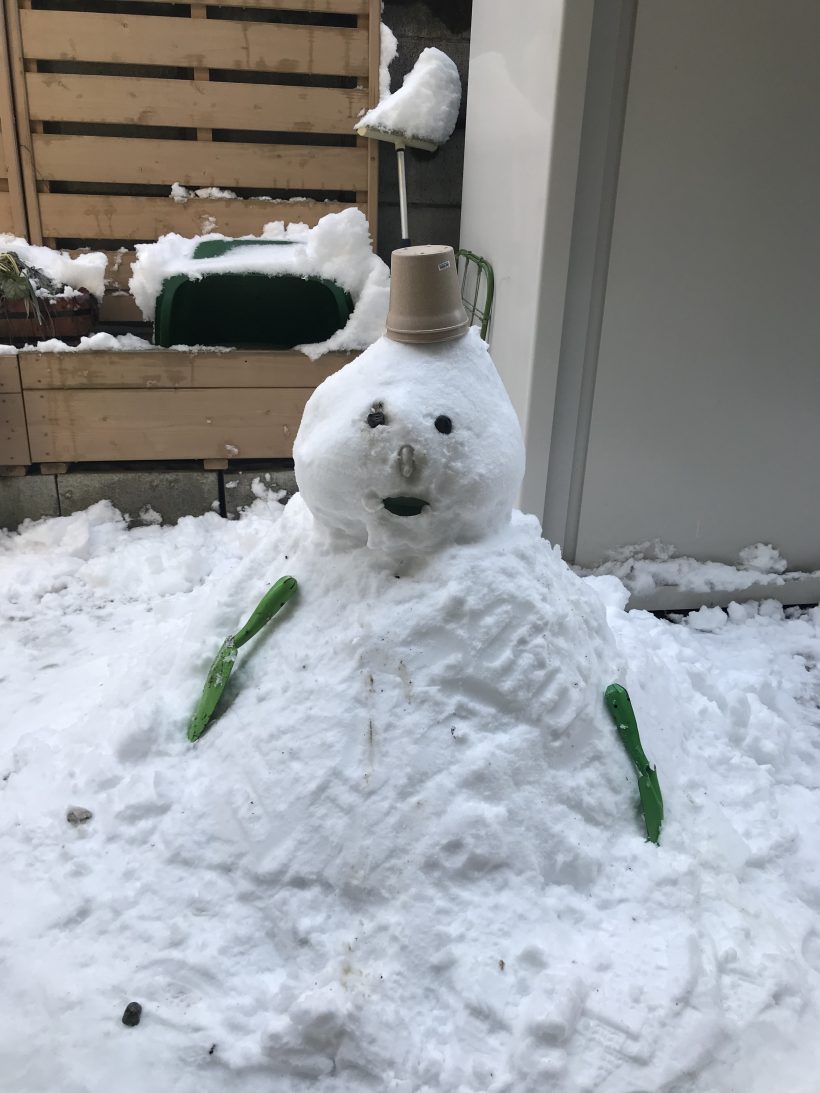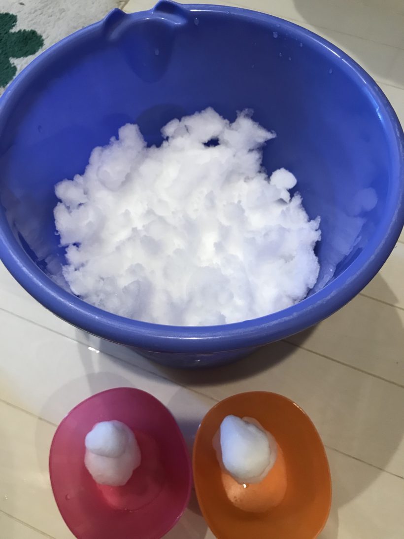 子供たちにはバケツに雪を入れて、小さな雪だるまを作る遊びで、娘はとても喜んでました。