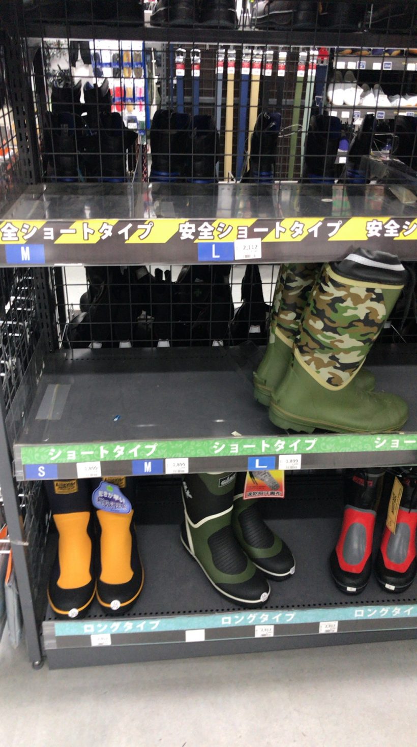 長靴は小さなサイズや高めの値段のものだけ売れ残っていました。