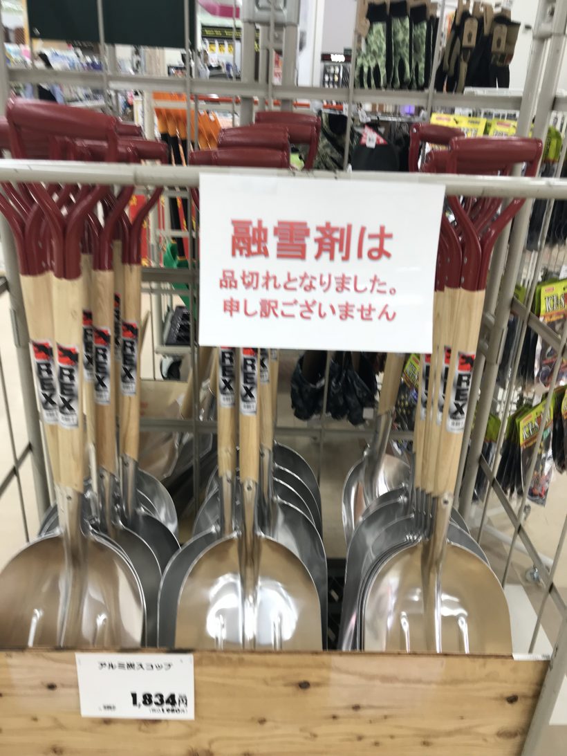早速ダンプ式のスコップと長靴を買い替えようとホームセンターに行ったらほぼ売り切れで品薄状態でした。