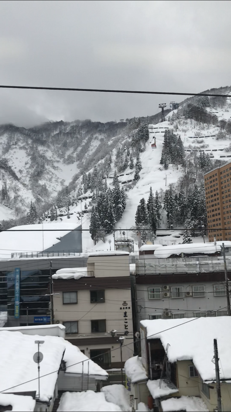 新幹線で高崎からトンネルを抜けた湯沢の雪景色