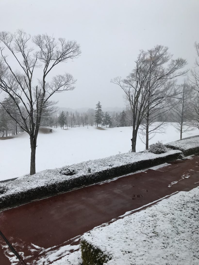 お昼を食べて、午後のアウトコースはスタートしてすぐに天気予報通り、雪が降り始めてきました。