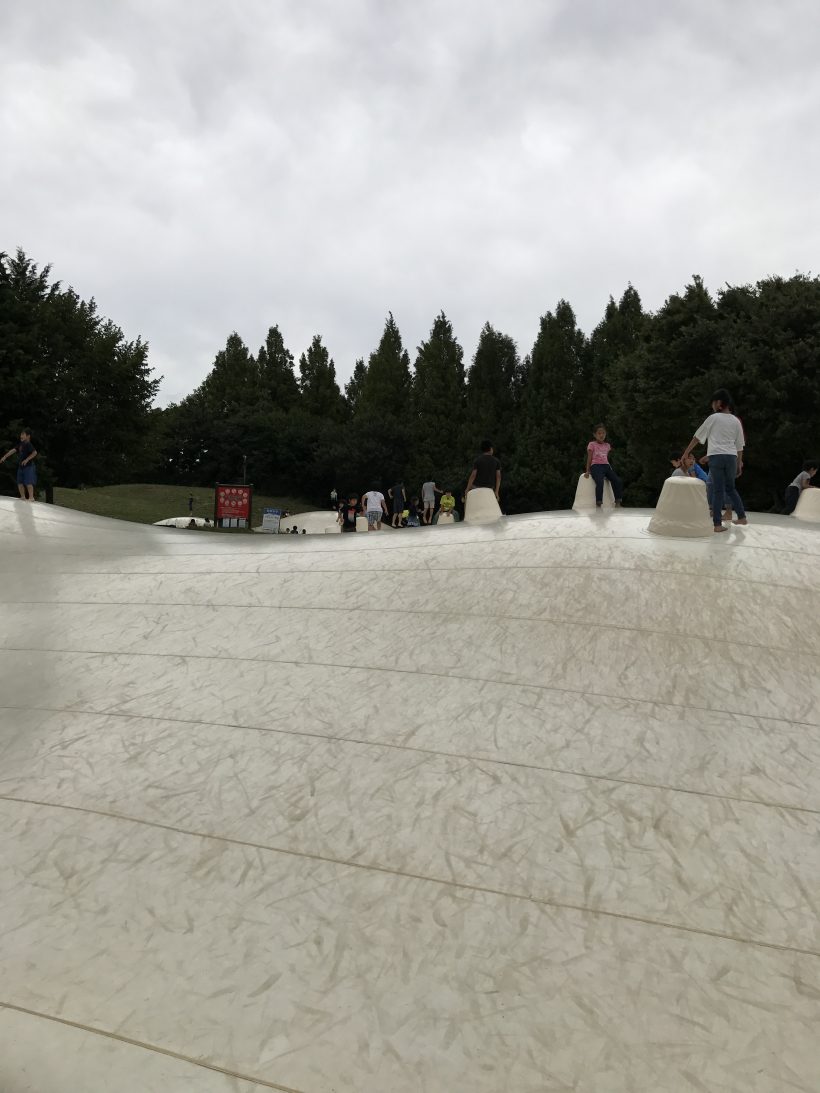 森林公園は東京ドームの約65倍の広さがあります。日本一大きなエアートランポリンのぽんぽこマウンテンが目玉です。