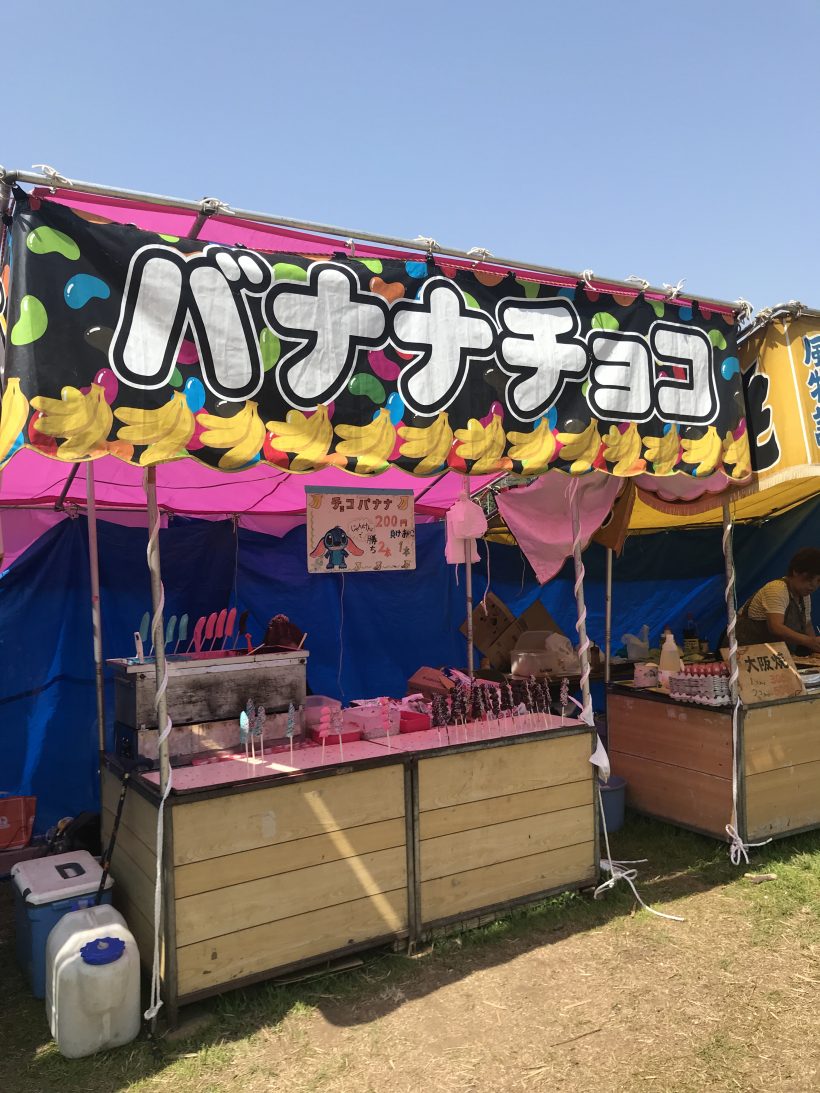 出店もいっぱい出ていて、チョコバナナ1個200円を買いました。