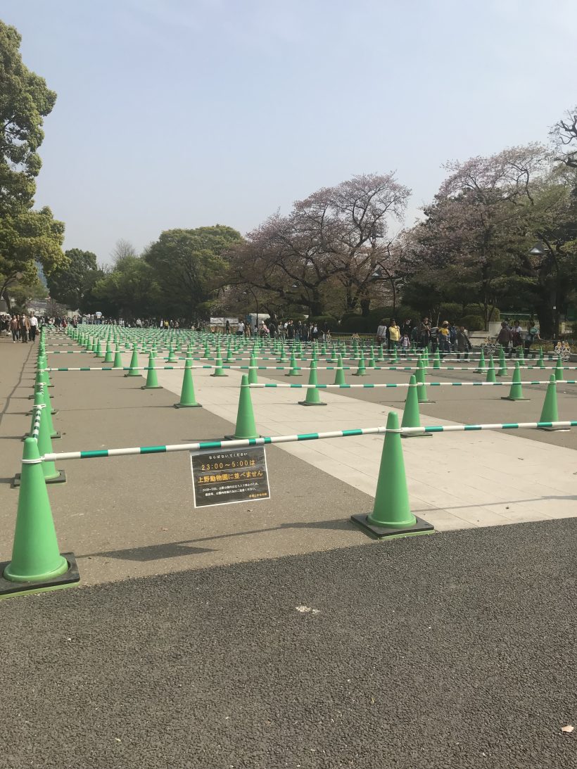 それにしても並ぶ列の区分けのコーンの仕切りが長く迷路のようになっていました。23:00~5:00は上野公園内は立ち入り禁止のため並べないようです。