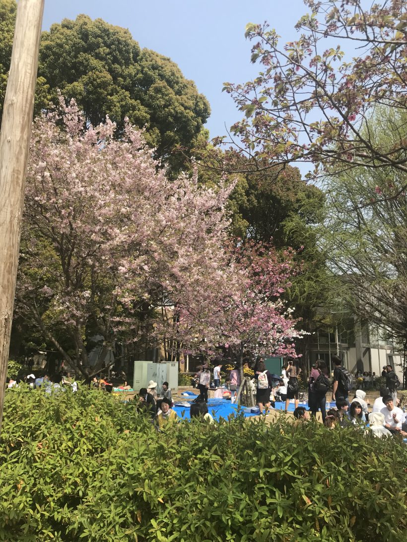 桜はほとんど散っていましたが、八重桜やぼたんがところどころで咲いていました。花見客はぽかぽか陽気で花に酔いしれるというよりは、お酒をのみワイワイできれば、桜がなくても平気で楽しそうに騒いでいる若者が多かったです。