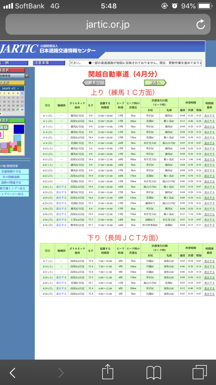 GWは40~50km渋滞は覚悟しているので、帰りも渋滞にはまらないように調整してみたいと思います。