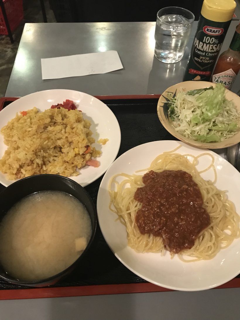 カレーピラフとナポリタンセットが500円でした。今は値上がりして550円です。
