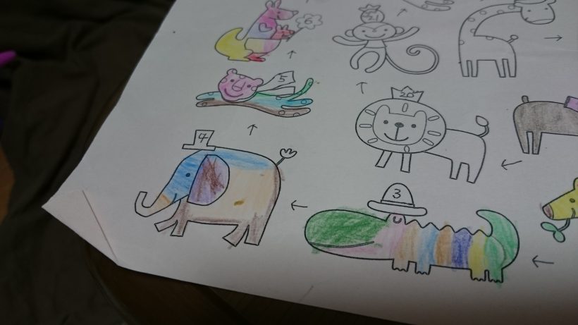 小学生のお姉ちゃんの方は宿題をきっちり終わらせているのに対し、息子氏の方は最終日に泣きついてくるタイプでしょうか。(色を塗るだけなのに…)