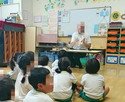 子供も理解しているのかは疑問でしたが、理解するよりも先に英語の波に慣れさせるって感じなんでしょうね。園児の半数以上はノリでやっているような感じでしたが、そのノリが大事なのでしょう。