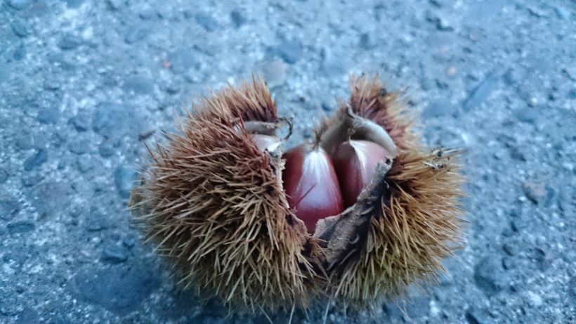 昨日、用事があって実家に行くと、近くの栗の木が最盛期とのこと。