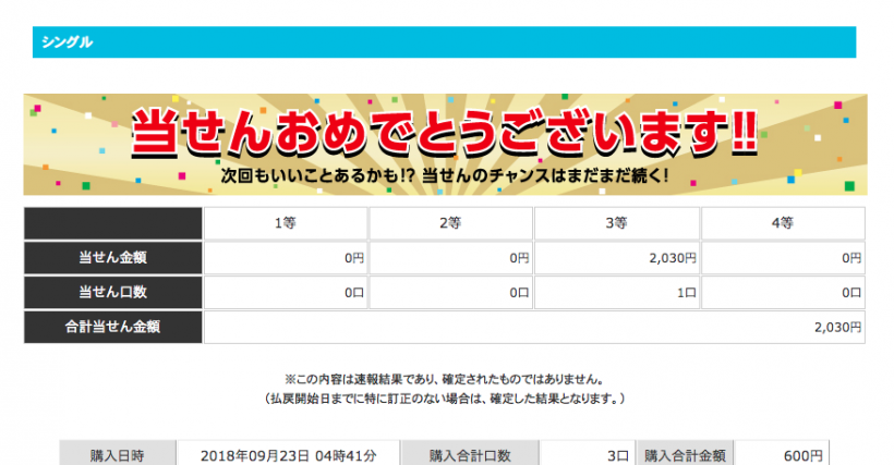 3ヶ月ほど続けましたが、当選は3等(数百円)が1度だけ。