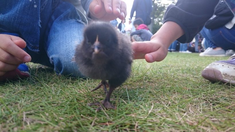 そんな中で一番人気だったのは新潟地鶏のヒナと直接触れ合えるコーナー。
