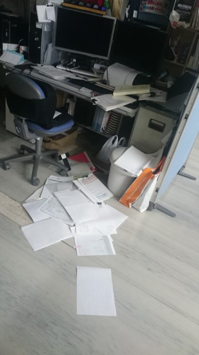 新潟市中央区の弊社内で一番の被害は、おそらく弊社イケメンプログラマーのデスクだったことだけをご報告。