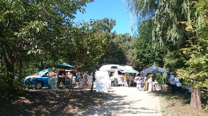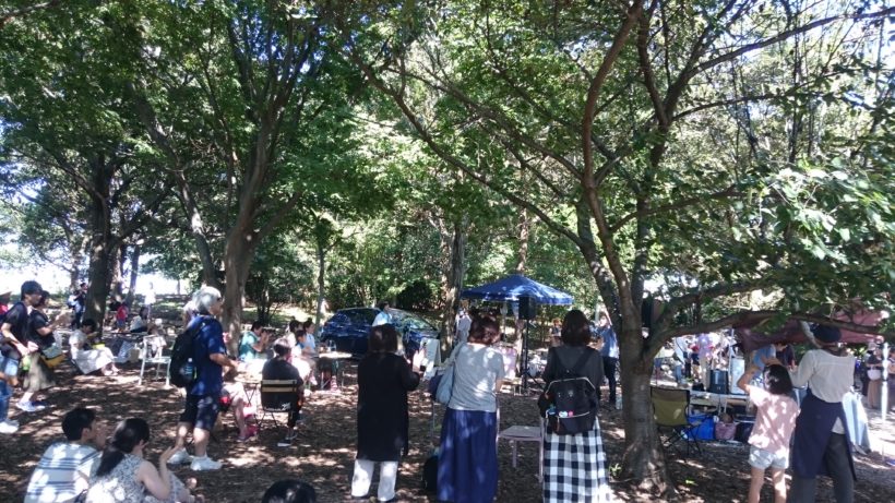 森の木陰でローカルかつオーガニック的な食べ物や雑貨、クラフトショップやワークショップが立ち並び、今日はライブもやっていました。