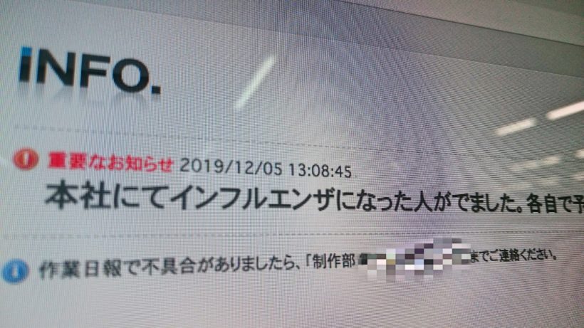 弊社内でついについにインフルエンザ発症者が出たようです。