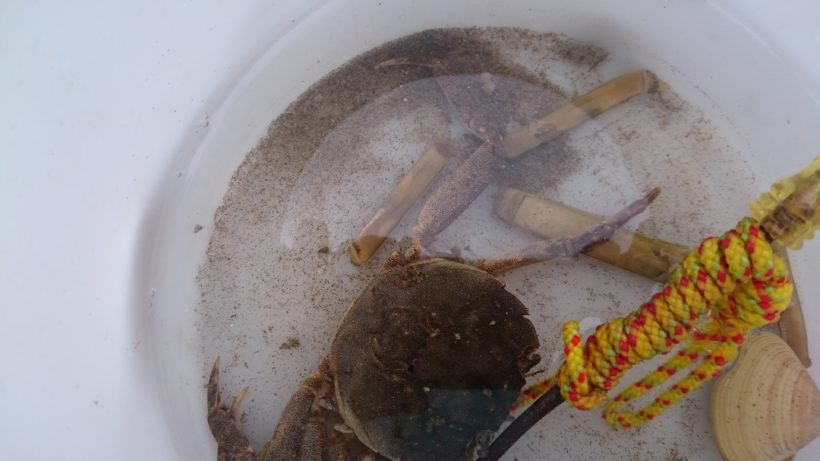 早速、先生パパさんの言う通りに貝の穴を探しますが、今日はコンディションが悪くなかなか見つかりません。