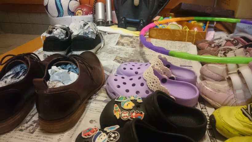 特に被害が大きかったのが金魚鉢の真下にあったヒグチの靴。