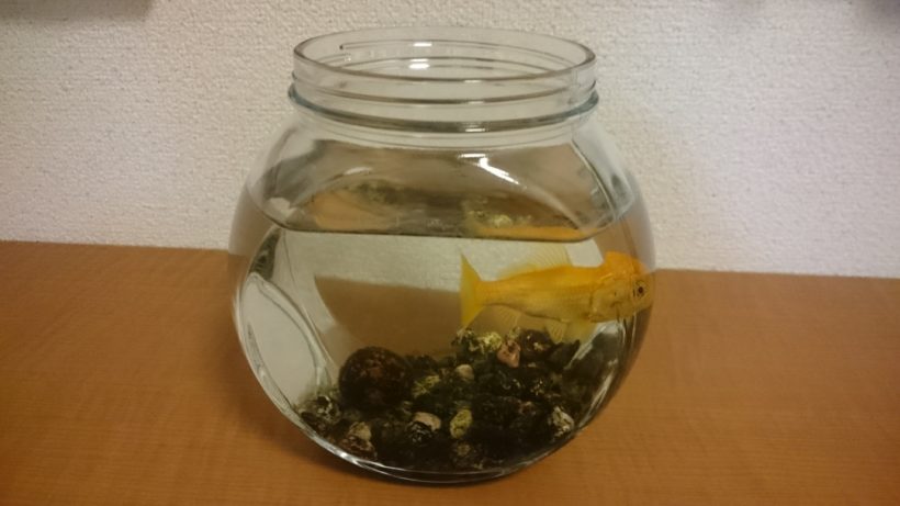 餌の横にちゃんと水を置いているにも関わらず、隙を見つけては金魚鉢の水をペロペロ。