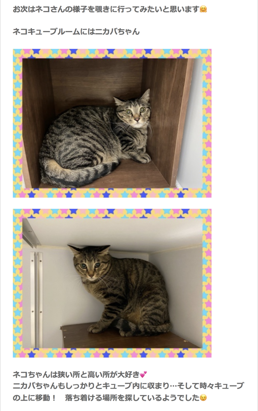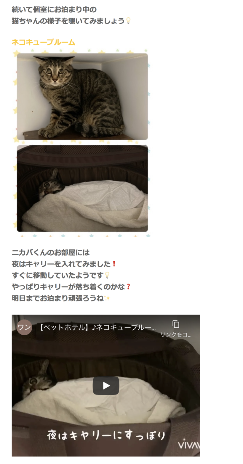 そんな心配に配慮してか、この「スマイルワン」さんでは毎日ブログにて宿泊客(猫)の様子をアップしてくれる神対応。