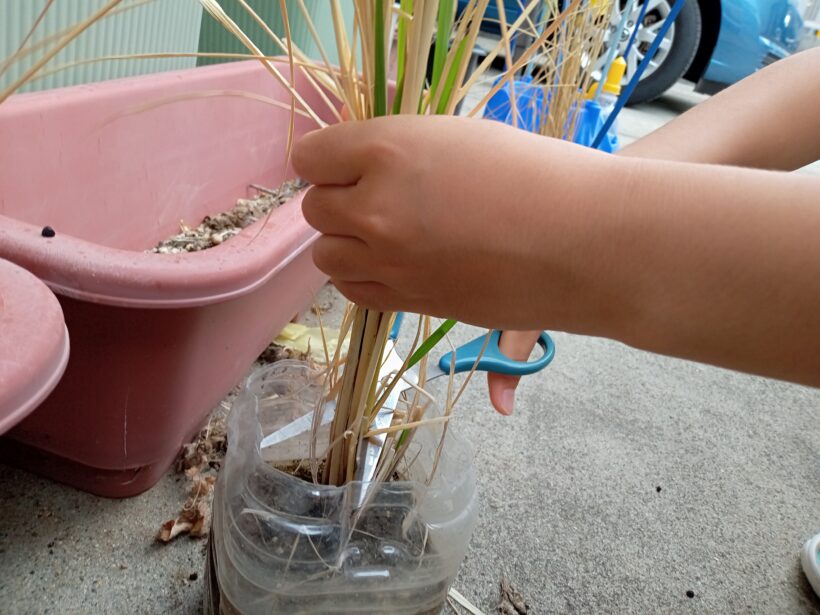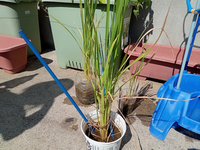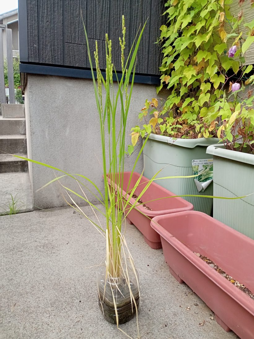 ということで、娘氏が春から牛乳パック→ペットボトルで育てきた稲が無事に収穫の運びとなりました。