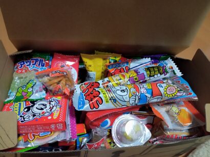 あ。中は駄菓子の詰め合わせです。お子たち大歓喜。