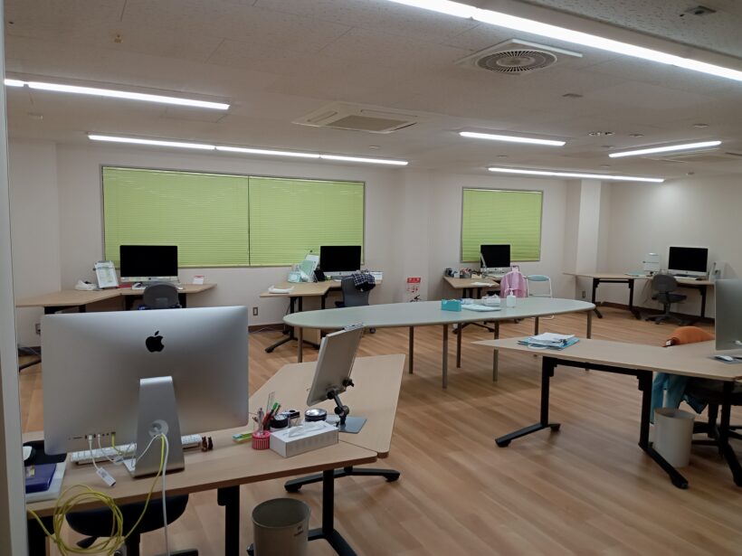 昨日からコロナ感染防止対策の一環で、制作部の一部メンバーが2階から3階に移って仕事をしている弊社。
