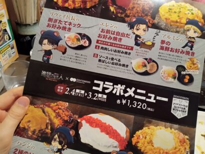 2/4(金)から全国のお好み焼 #道とん堀に進撃の巨人コラボメニューが登場!