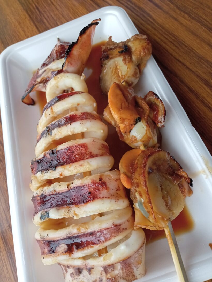 浜焼きも必須でしょう。欲を言えばイカのゲソも食べたかった
