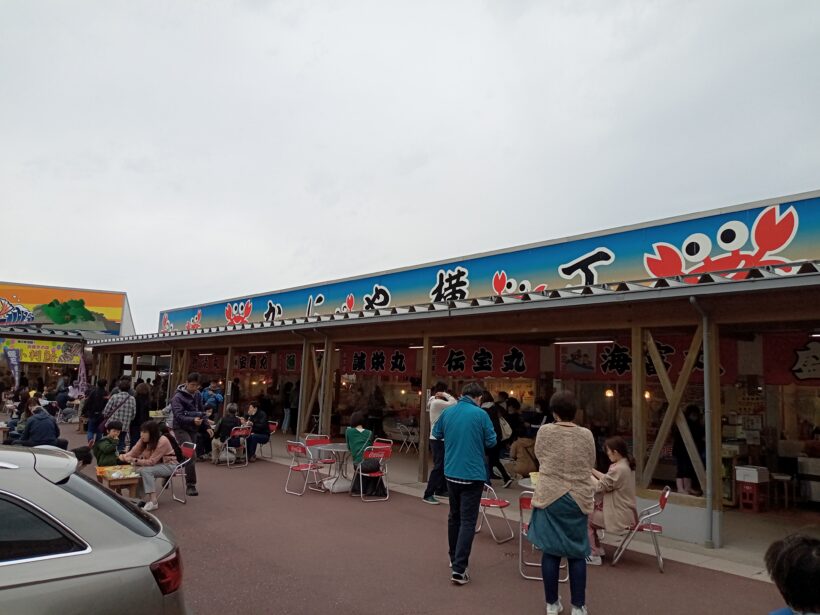 それにしても大勢の人間たちが一心不乱にカニにがっつく光景も凄まじかったな…。