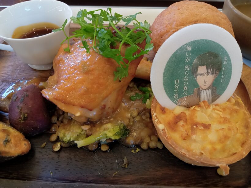 アトラクション前には進撃のコラボレストランで腹ごしら。これが彼らが食べていたメニュー(たぶん…)!?