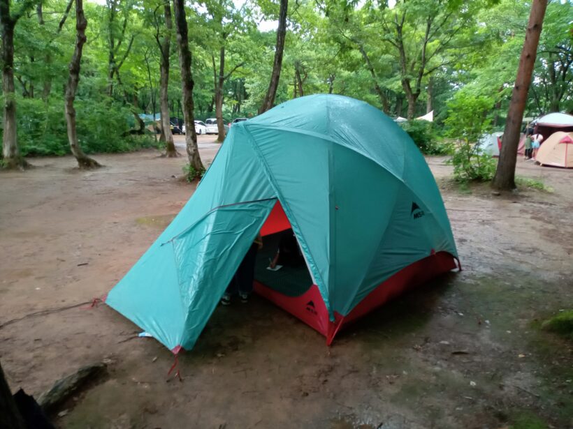 さあ、テント設営…と思い始めた矢先に大粒の雨が。