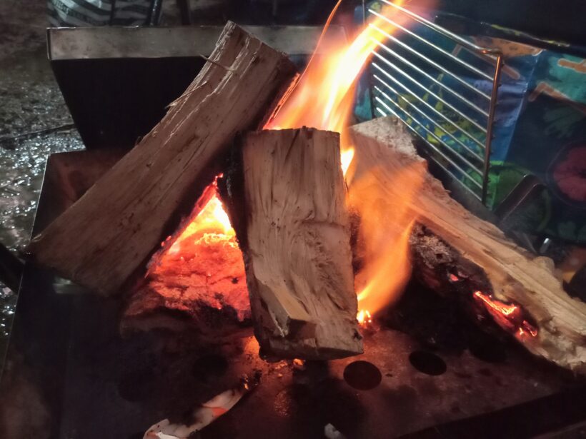 温泉後に焚き火を眺めながら、再び飲酒タイムというのも至福。