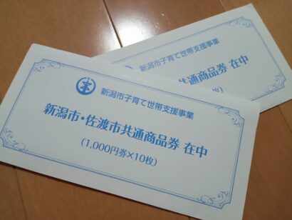 そう言えば新潟市さんから子供のいる家庭に「新潟市・佐渡市 共通商品券」が届いていました。
