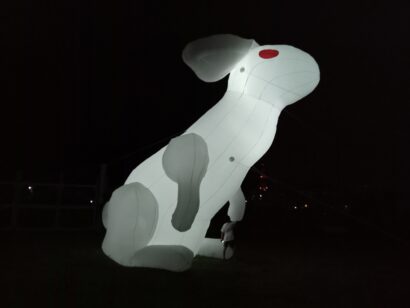 夜の公園を照らすミラーボールがなんともアバンギャルド。