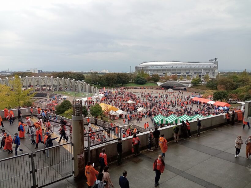 午前中から時折スコールのような豪雨が襲い、多くの観衆がスタジアムに入る前にびしょ濡れになりました(苦笑)。