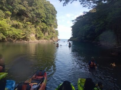 昼食後は佐渡最南端へ赴き、シーカヤック体験。