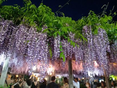 ライトアップされた藤棚が壮観。