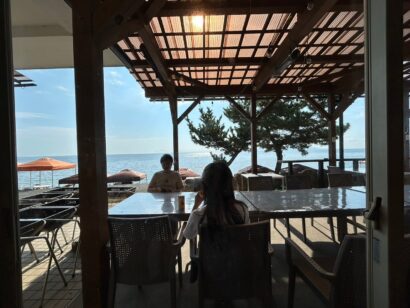 周りにはたくさんの海の家的なお店やペンションがあり、朝食を食べ終えると徐々に湖水浴のお客さんが増えてきました。