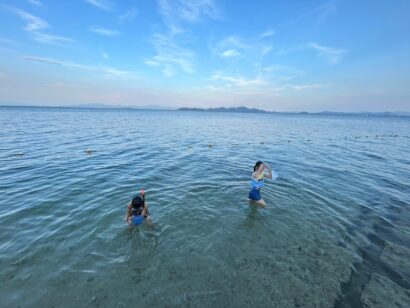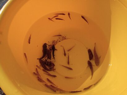 息子氏は朝5時半起床で湖に入り魚獲りをしていました(娘氏は6時半)。