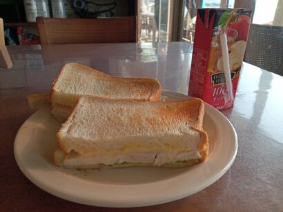 そして湖畔でいただく朝食(サンドウィッチ)が雰囲気も相まって美味いこと。