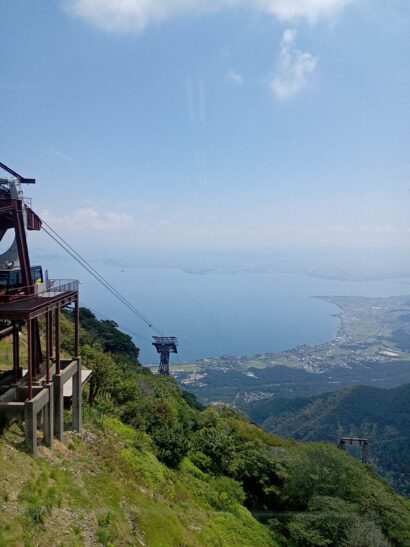 ロープウェイで山頂に登ると、琵琶湖をパノラマで楽しめます。