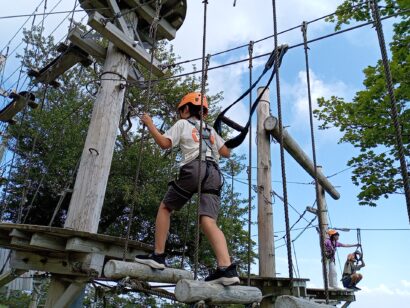 ハーネスを付けて地上5mの木の上を渡る結構本格的なやつです。