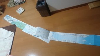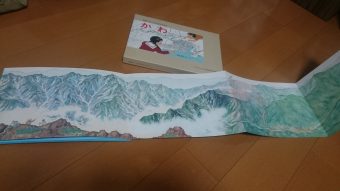 さすがに1枚の紙ではなく貼り合わせになっていましたが、子供たちの興味をひく面白いアイデアでした。(図書館で一気に広げようとしていたので必死に止めました)