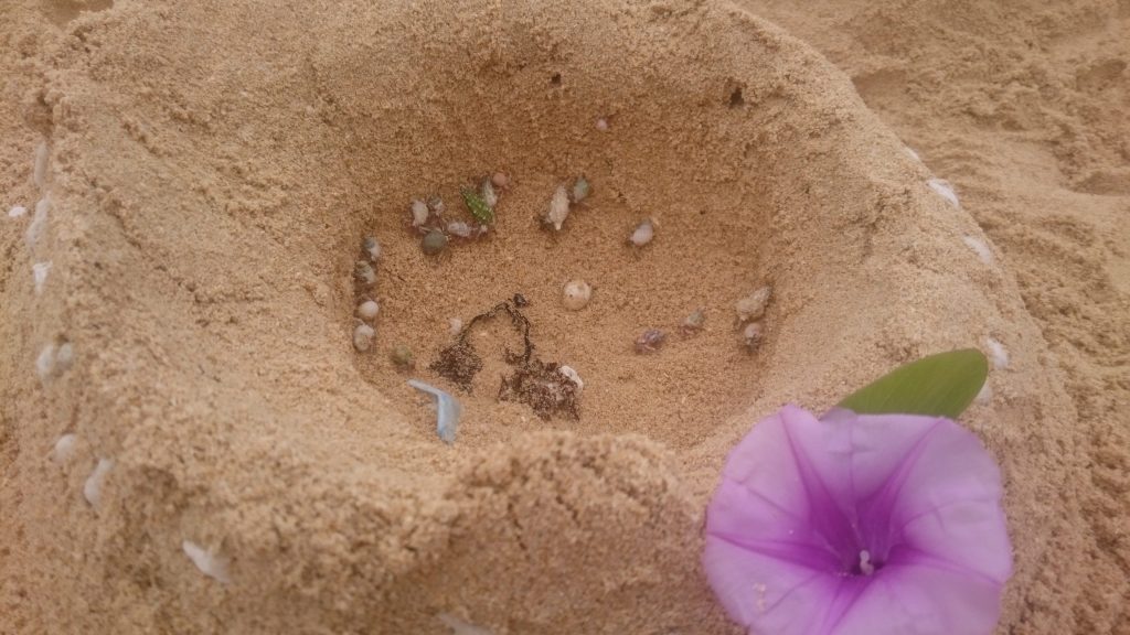 何故か浜辺で「やどかり牧場」を作り出す子供たち。脱獄者も許しません。