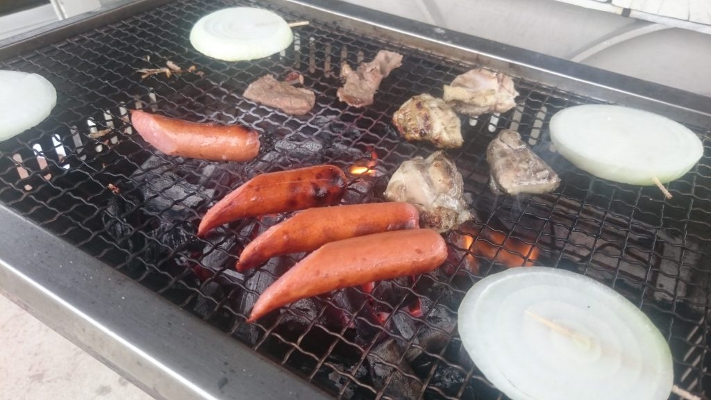 そのまま海が見える丘でバーベキュー。石垣島はどこで食べても肉が美味い。天国かよ。