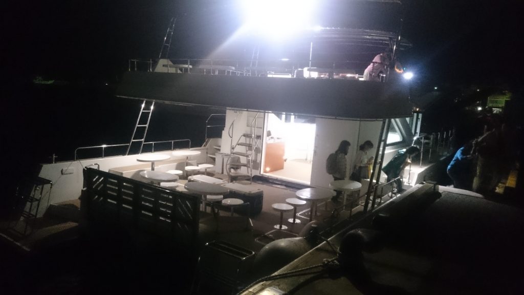 夜は星空を眺める船上ツアーに。残念ながら曇り空で星はわずか。遠くに見える稲光の方が綺麗でした。