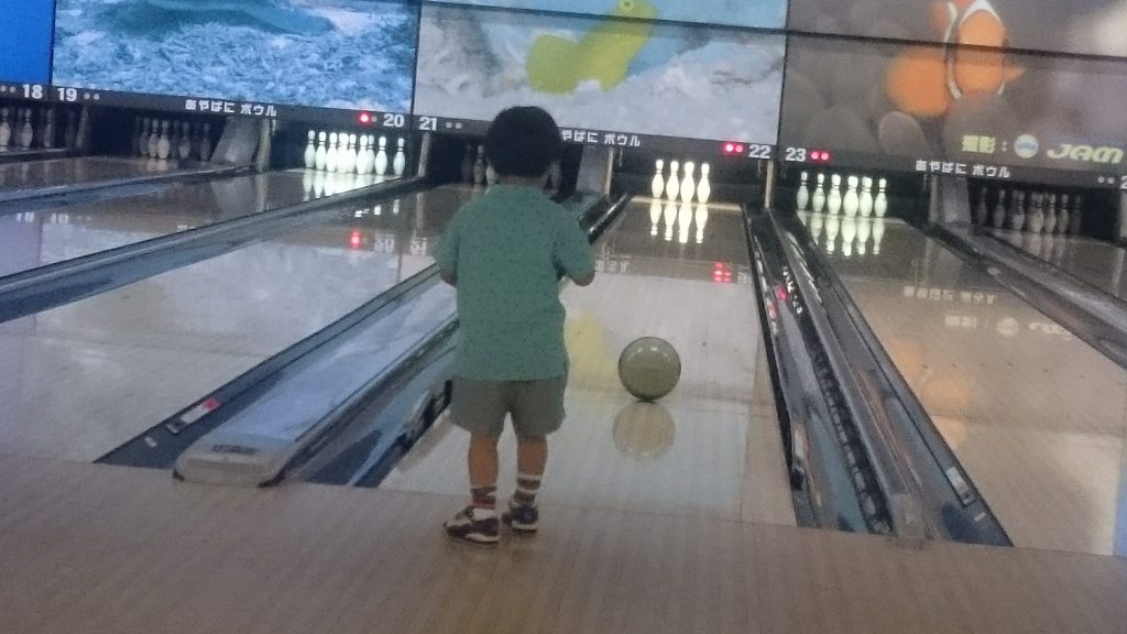 式の後、披露宴まで時間が空いたので子供とボーリングへ。この子たち、人生初ボーリングが石垣島で、とはなかなかアバンギャルド(?)