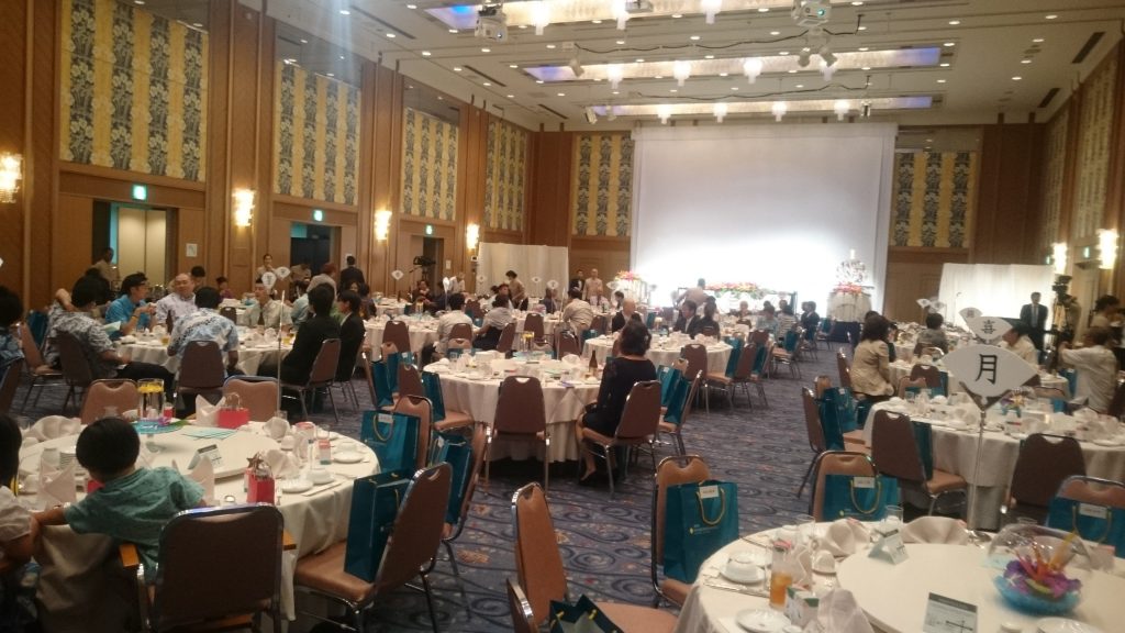 会場でかい。人多い。かりゆしOK。これぞ、沖縄うちなースタイル。