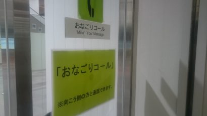 搭乗客と見送りに来た人がガラス越しに話せるサービス電話。呼び方は空港によって違うそうです。